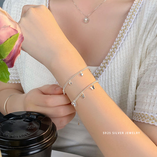 E廠【YC5367SL】S925純銀時尚蝴蝶愛心手鍊女百搭新款2024爆款ins甜酷少女 24.06-1