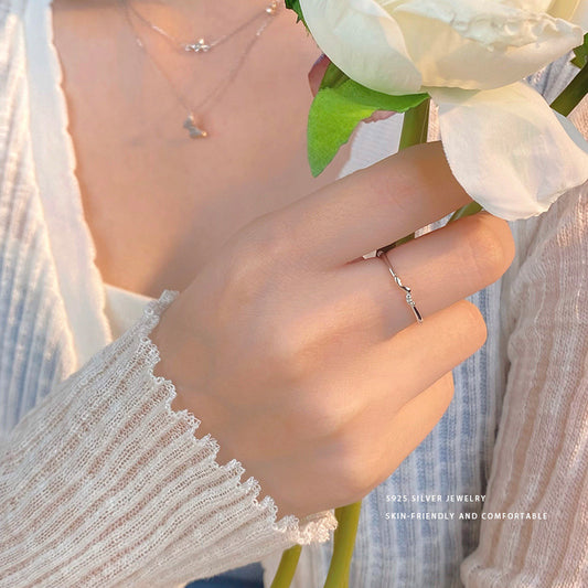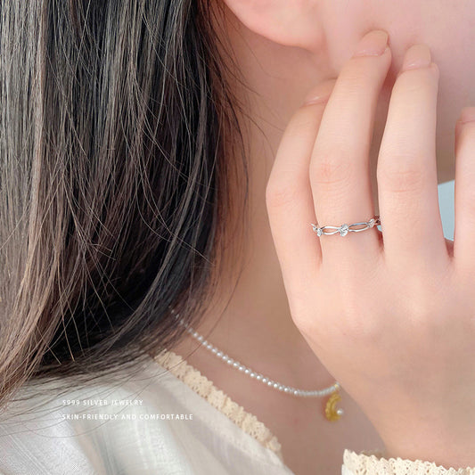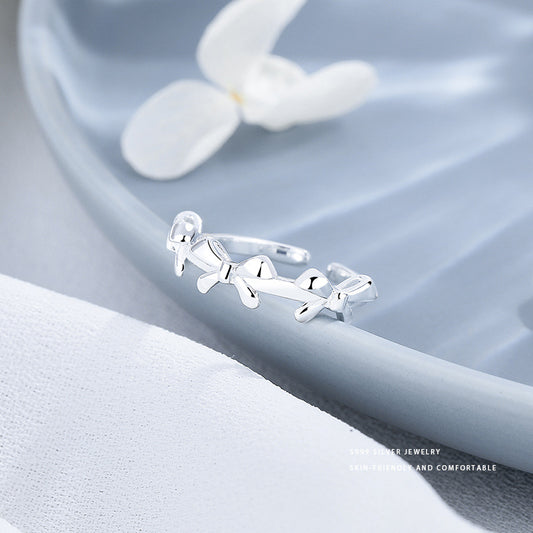 E廠【YC5385R】S999足銀甜美蝴蝶結戒指女設計感少女心可愛百搭開口戒 24.03-1