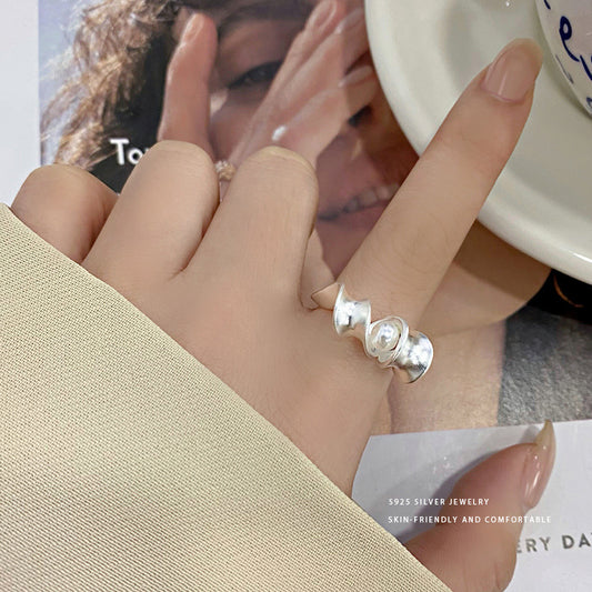 E廠【YC5395R】S925純銀小眾纏繞珍珠戒指設計感時尚個性輕奢開口戒 24.01-4