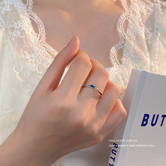 E廠【YC5391R】S925純銀夏季藍色飛羽戒指女小清新新款百搭時尚設計感指環 24.04-4
