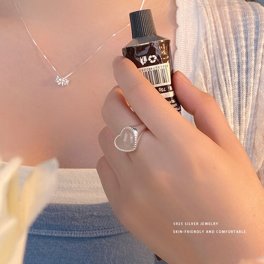 E廠【YC5397R】S925純銀高級感白瑪瑙愛心戒指女個性簡約指環ins開口可調節 24.05-5