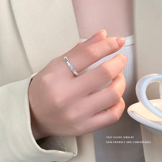 E廠【YC5388R】S925純銀簡約肌理藍鑽戒指女輕奢百搭高級感多款式指環 24.02-3