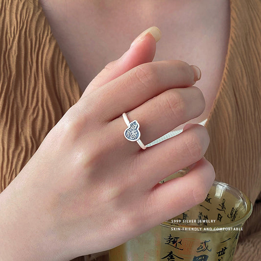 E廠【YC5400R】S999足銀復古做舊福字葫蘆戒指女國潮本命年新中式開口戒 24.01-3