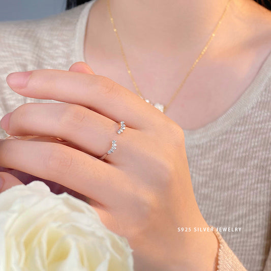 E廠【YC5401R】S925純銀鑲鑽睫毛戒指女小眾設計感高級感可愛開口指環 24.06-1