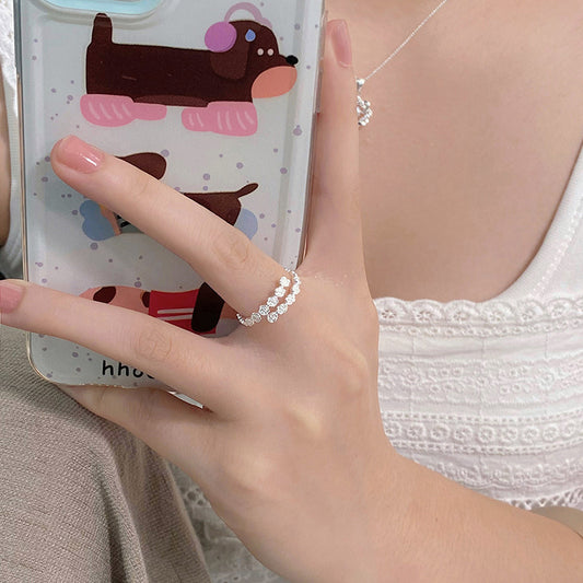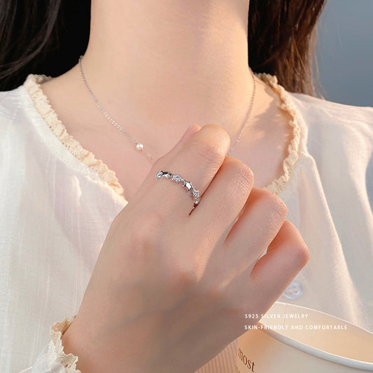 E廠【YC5402R】S925銀小清新五角星戒指女時尚個性滿天星新款開口指環 24.04-2