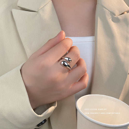 E廠【YC5414R】S925純銀幾何水滴戒指女重工時尚個性冷淡風開口可調指環 24.04-4