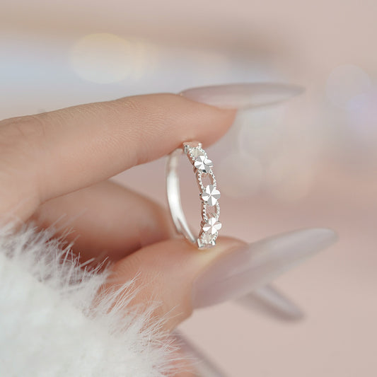 E廠【YC5408R】S999足銀輕奢四葉草鏤空戒指女甜美韓版韓式田園風指環 25.04-3