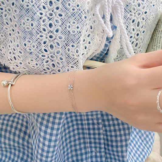 E廠【YC5408SL】S925純銀四葉花朵雙層手鍊輕奢時尚簡約清新文藝小眾手鍊 24.07-1