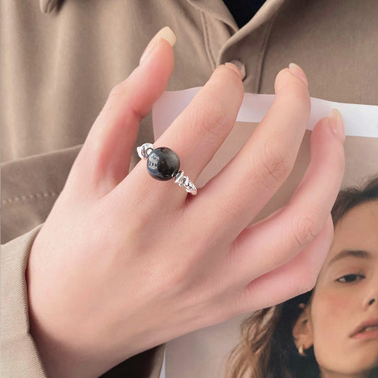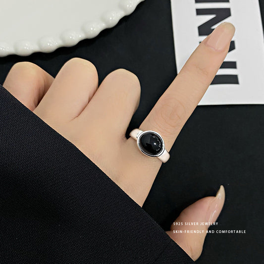 E廠【YC5421R】S925純銀時尚橢圓黑瑪瑙戒指小眾設計感簡約帥氣顯白指環 24.02-1