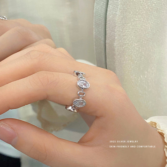 E廠【YC5422R】S925銀簡約橢圓鋯石戒指女幾何時尚個性新款爆款開口指環 24.04-3