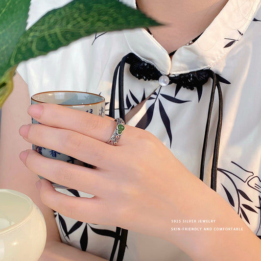 E廠【YC5419R】S925純銀精美和田玉葫蘆戒指女復古民族風中式可調指環 24.05-3