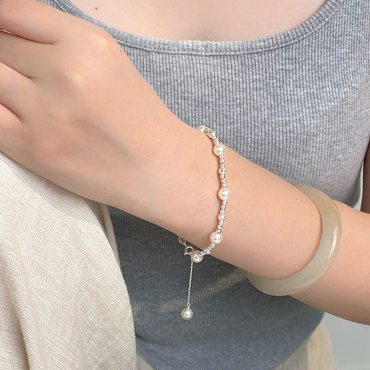 E廠【YC5423SL】S925純銀珍珠切花珠手鍊小清新甜美風百搭日常女小眾手飾 24.08-4