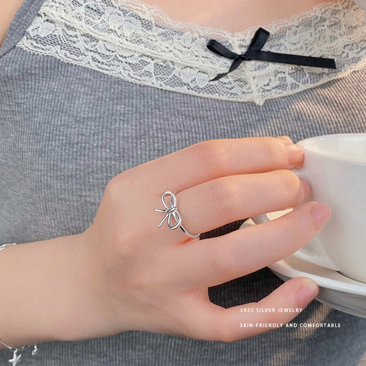 E廠【YC5424R】S925銀甜美蝴蝶結戒指女線條小眾設計感新款開口可調節 24.05-1