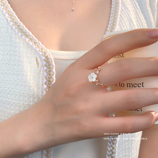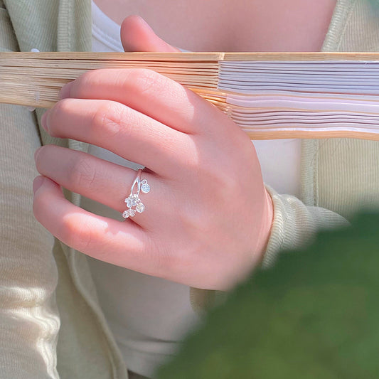 E廠【YC5433R】S925銀淡雅葉子花朵戒指女小清新仙女風新款百搭開口戒 24.04-2