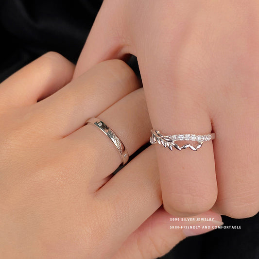 E廠【YC5431R】S999足銀輕奢麥穗枝葉情侶對戒ins高級感小眾設計感對戒 24.04-3