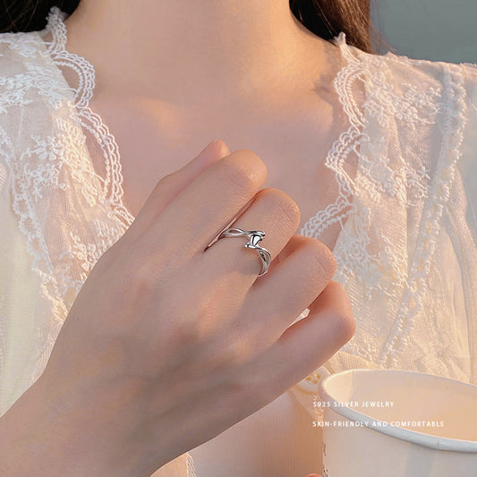 E廠【YC5434R】S925銀清新纏繞愛心戒指女ins風時尚夏季百搭可調式戒指 24.05-1