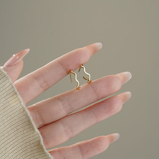 E廠【YC5443E】S925純銀波浪彎鉤耳環幾何極簡風小眾耳飾氣質溫柔文藝風 25.03-1