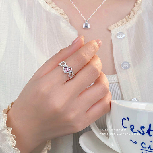 E廠【YC5425R】S925純銀甜美粉鑽愛心戒指女輕奢少女心公主風開口戒指 24.02-3