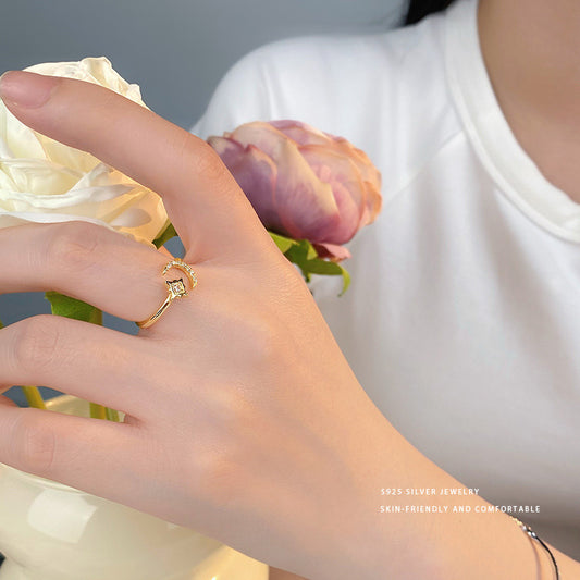 E廠【YC5444R】S925純銀夢幻星月戒指女輕奢小眾設計感新款百搭開口指環 24.05-3