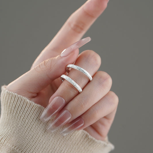 E廠【YC5439R】S999足銀冷淡風釘砂情侶對戒男女款時尚個性氣質禮物指環 25.03-1