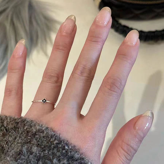 E廠【YC5437R】S925純銀小巧黑鑽花朵戒指女輕奢小眾設計感甜美開口戒 24.02-3