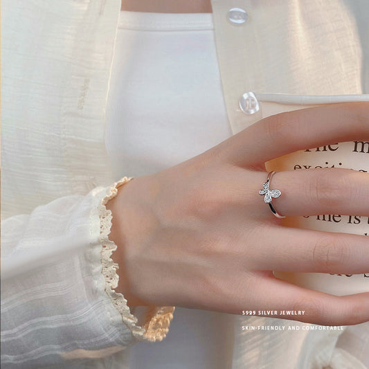 E廠【YC5442R】S999足銀簡約滿鑽蝴蝶戒指女時尚小眾設計感甜美百搭指環 24.04-3