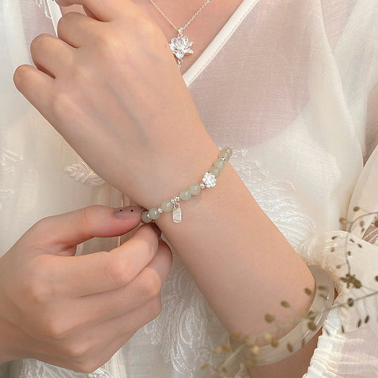 E廠【YC5433SL】S999足銀高級感福牌蓮花手鍊女文藝復古簡約精緻手鍊 24.08-4