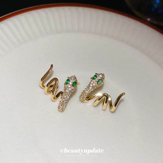 A廠【HE24092】真金電鍍925銀針鋯石蛇形耳環女復古時尚設計耳環小眾耳飾輕奢高級感 24.12-2