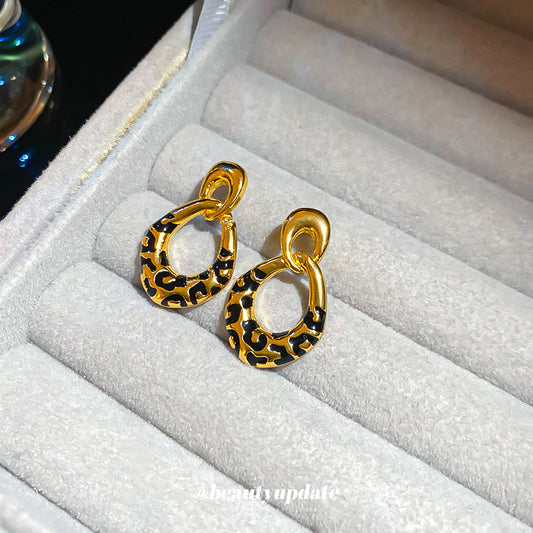A廠【HE24058】925銀針滴油豹紋不規則橢圓形耳環女中古宮廷風耳環時尚耳飾輕奢高級感 24.12-2