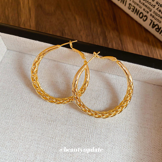 A廠【HE24085】真金電鍍925銀針金屬麻花耳圈耳環女簡約小眾耳環跨國耳飾輕奢高級感 24.12-2
