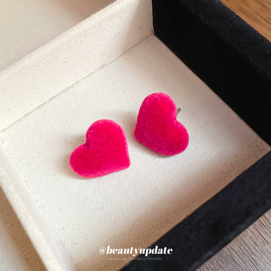 A廠【HE24103】925銀針植絨愛心耳環女小眾簡約耳環輕奢高級感時尚氣質百搭耳飾秋冬 24.12-2
