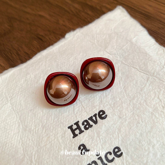 A廠【HE24075】925銀針美拉德樹脂耳環女小眾復古設計感耳環時尚氣質耳環輕奢高級感 24.12-1