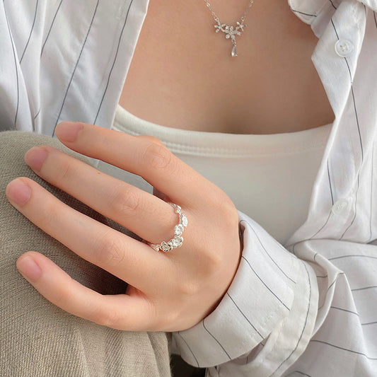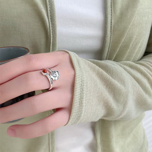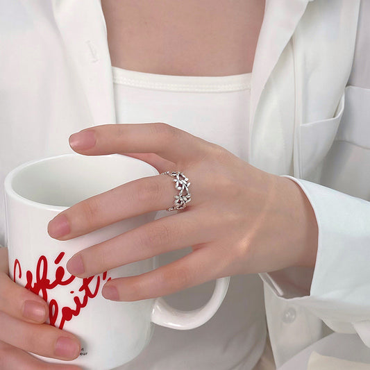 E廠【YC5543R】S999足銀小清新花朵戒指女民族風高級感輕奢可調指環 24.07-2