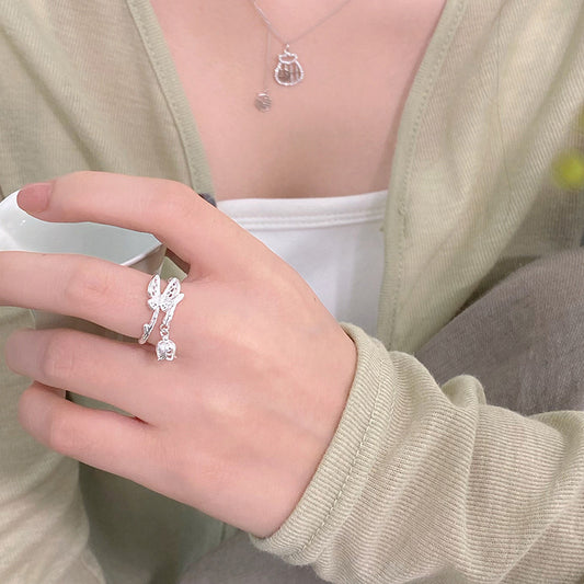 E廠【YC5546R】S925純銀輕奢蝴蝶結戒指女個性韓版甜美可愛飾品 24.06-4