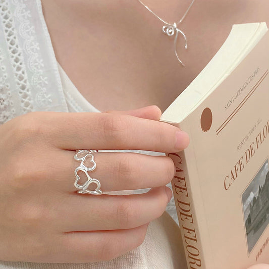 E廠【YC5550R】S925純銀鏤空愛心戒指個性高級感簡約輕奢小清新可愛戒指 24.07-1