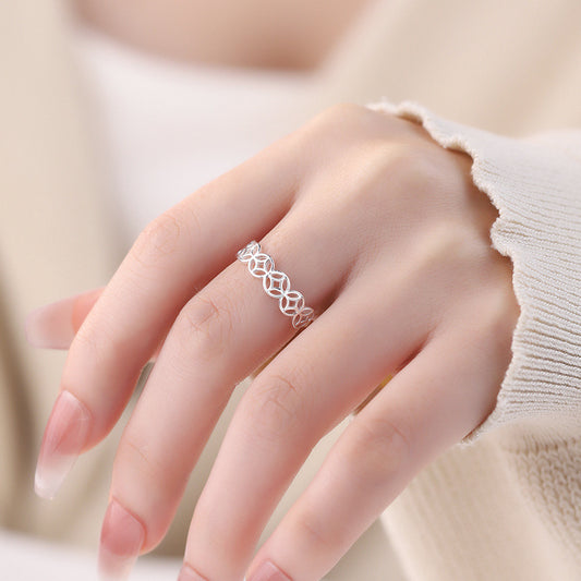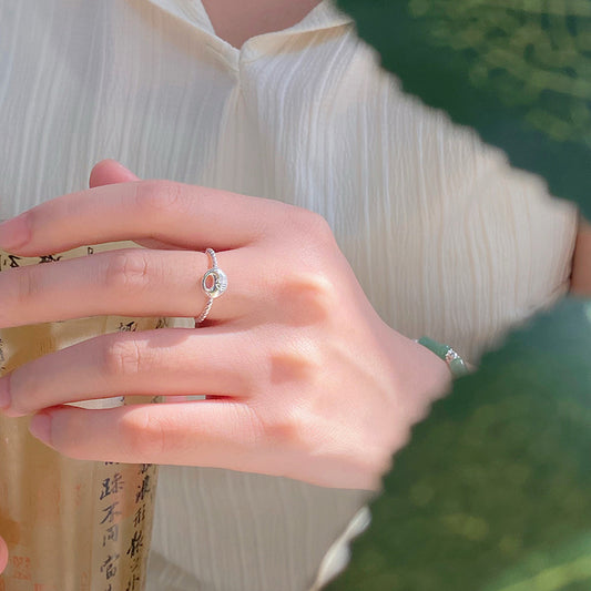 E廠【YC5548R】S999足銀幣戒指女新中式個性小眾國風設計文藝開口戒 24.12-3