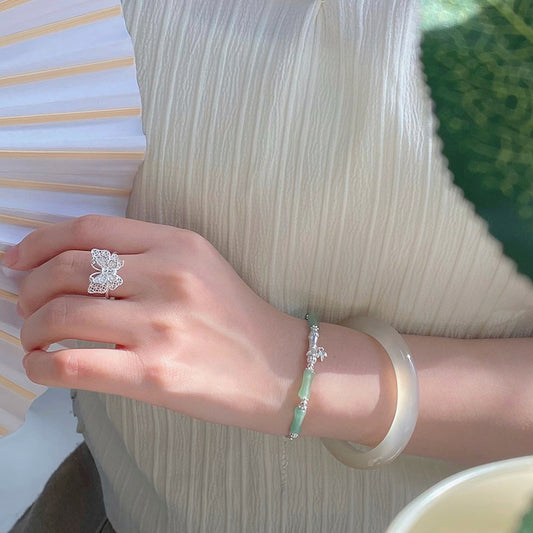 E廠【YC5542R】S999足銀蝴蝶鈴蘭花戒指清新甜美小眾氣質百搭精緻手飾 24.08-1