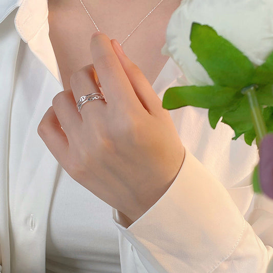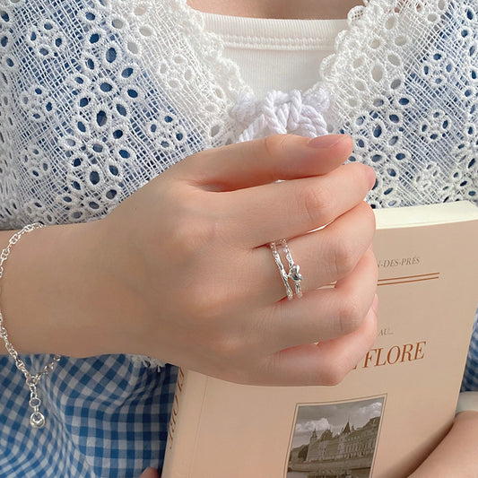 E廠【YC5557R】S925純銀愛心雙層戒指冷淡風個性獨特設計高級百搭輕奢戒指 24.07-1