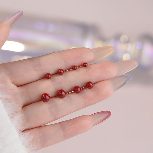 E廠【YC7161E】S999足銀安可拉紅珍珠耳環簡約多尺寸幾何輕奢大氣耳飾 25.07-1