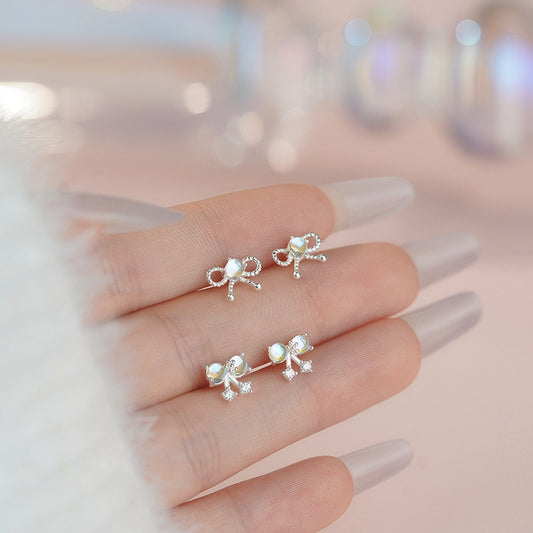 E廠【YC6826E】S925純銀甜美蝴蝶結鋯石耳環女公主精緻氣質養耳洞耳飾 25.06-4