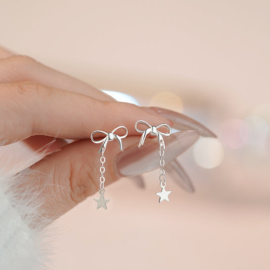 E廠【YC7087E】S925純銀蝴蝶結五角星耳環清新甜美文藝韓系精緻氣質耳飾 25.05-5