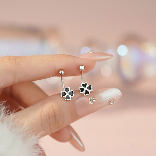 E廠【YC7039E】999足銀四葉草U型螺絲耳環個性清新氣質小眾簡約時尚耳飾 25.04-2