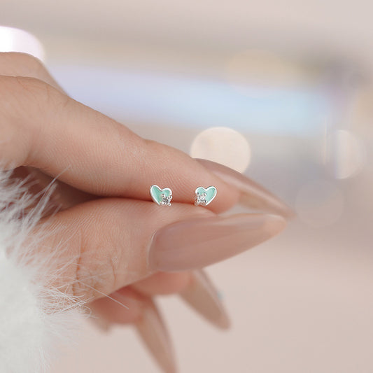 E廠【YC6995E】S999足銀清新愛心滴膠耳環女甜美文藝風少女日常輕奢耳飾 25.06-1