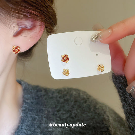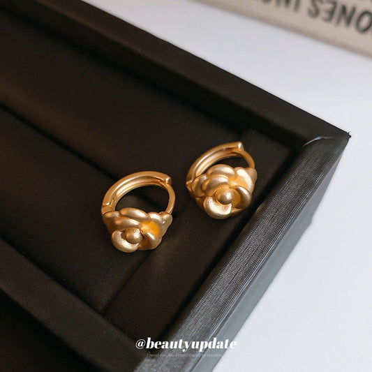 A廠【HE24233】簡約山茶花金屬耳環法式百搭氣質耳環時尚小眾設計耳環輕奢高級感 24.12-2