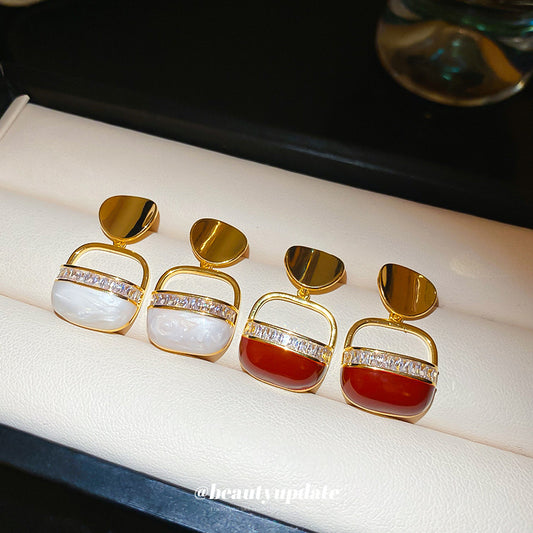 A廠【HE24427】真金電鍍銀針鋯石圓形包包耳環時尚氣質百搭耳環輕奢高級感耳飾女 25.01-1