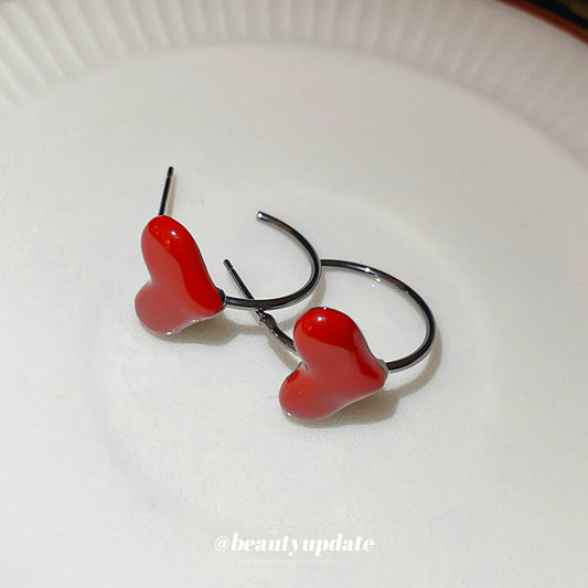 A廠【HE24144】925銀針安可拉紅色滴油愛心C型耳環小眾百搭氣質耳環輕奢高級感耳飾 24.12-2