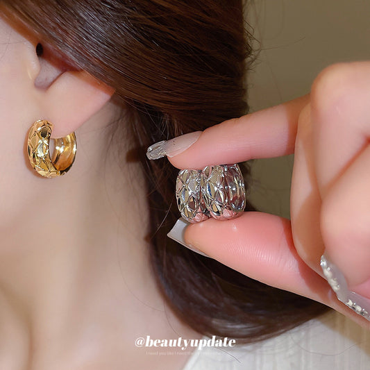 A廠【HE24488】真金電鍍韓系花紋金屬耳扣時尚通勤耳環百搭設計耳飾輕奢高級感女 25.01-3