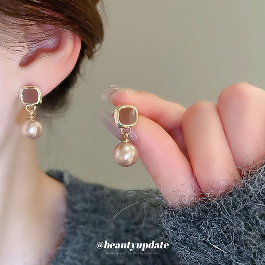 A廠【HE24232】925銀針復古滴油方形人造珍珠耳環女小眾時尚百搭耳環高級感耳飾秋冬 24.12-3