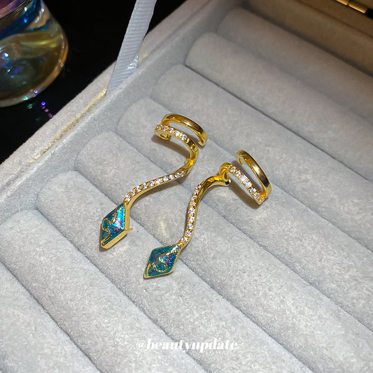 A廠【HE24467】真金電鍍銀針鋯石滴油蛇形耳環耳夾小眾個性耳環輕奢高級感耳飾女 25.01-1