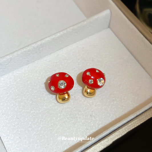 A廠【HE24253】925銀針滴油鑲鑽蘑菇耳環女可愛百搭時尚耳環小眾簡約耳環輕奢高級感 24.12-3